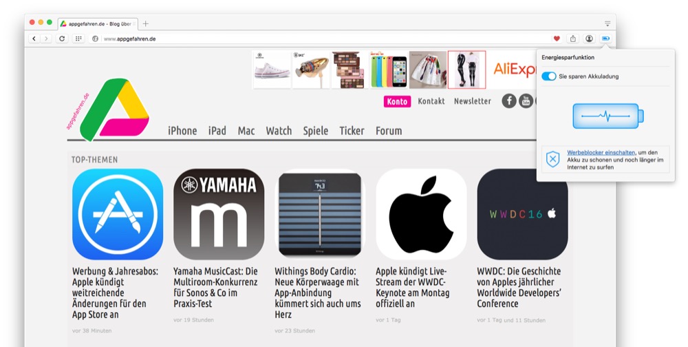 Neben einem Vollbildmodus kann in den Optionen so einiges eingestellt werden, etwa die Bildqualität oder ob diese überhaupt geladen werden sollen. Links können ohne Probleme in einem zweiten Tab geöffnet werden, man kann sogar auf der Seite nach bestimmten Inhalten suchen.
