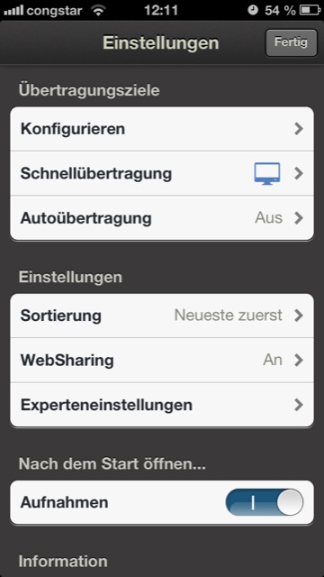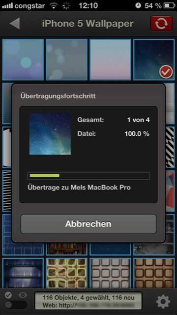 Wenn man die beiden Hürden genommen hat, bekommt man ein richtig gutes Programm. Bilder können zum Beispiel direkt an die Mac-Suite iPhoto gesendet werden, ohne den Umweg über iTunes oder ein Kabel. Natürlich muss sich das iGerät dazu im selben Netzwerk befinden, ist doch klar.