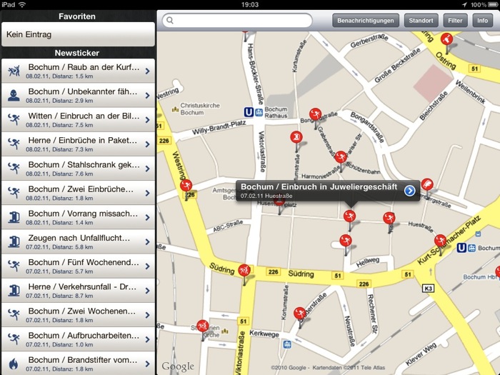 Die zwei wichtigsten Dinge gleich vorneweg: Die Verbechen-App (App Store-Link) braucht man ganz sicher nicht auf seinem iPhone oder seinem iPad, trotzdem kann es interessant sein, in der Umgebung und den Polizeiberichten zu schmökern. Zum anderen werden in Verbrechen momentan nur elf Bundesländer unterstützt, die allerdings in der Artikelbeschreibung aufgelistet sind.