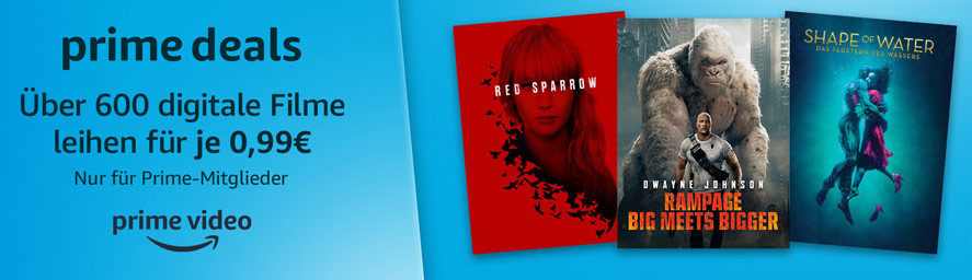 Prime-Mitglieder können wieder aus einer großen Anzahl an Filmen wählen und diese für nur je 99 Cent ausleihen. Insgesamt gibt es mehr als 600 Filme. Der Vorteil hier: Ihr könnt jetzt mehrere Filme leihen, müsst sie aber nicht sofort anschauen. Nach der Ausleihe habt ihr 30 Tage Zeit. Einmal angefangen, muss der Film innerhalb von 48 Stunden komplett angeschaut werden, danach wird er digital „zurückgegeben“, ist also nicht mehr abrufbar.