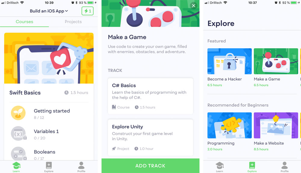 In Sachen Programmierung haben wir euch in der Vergangenheit schon einige Tipps gegeben. Wer einen möglichst spielerischen Ansatz sucht, ist mit Human Resource Machine sehr gut bedient. Etwas theoretischer und mit deutlich mehr Text ging es in Swifty zur Sache, eine App aus deutscher Entwicklung, die für 2,99 Euro freigeschaltet werden kann und immerhin mit viereinhalb Sternen bewertet ist. Wer noch mehr Stoff wünscht, sollte einen genauen Blick auf Mimo (App Store-Link) werfen – die sogar vom gleichen Entwickler stammt.