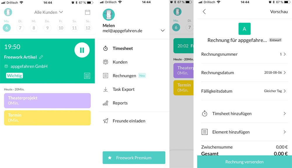 Zwar ist das gesamte Interface der App in englischer Sprache gehalten, aber da man ja vermehrt mit eigenen Angaben zu Projekten und Aufgaben arbeiten wird, kann man diesen Aspekt prinzipiell vernachlässigen. Hat man sein neues Nutzerkonto über eine E-Mail verifiziert, kann man sich über einige Beispiel-Aufgaben in die App hineinfinden, oder auch direkt eigene Projekte anlegen.