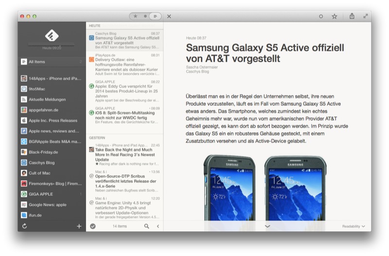 Auf meinem iPhone gehört ein RSS-Reader zur Standardausstattung. Auch wenn bei mir die kostenlose App Newsify die Nase vorne hat, kann auch der tolle Reeder 2 (App Store-Link) von Silvio Rizzi überzeugen. Die 4,49 Euro teure Universal-App für iPhone und iPad wurde nun für die Bildschirmgröße von iPhone 6 und iPhone 6 Plus angepasst.