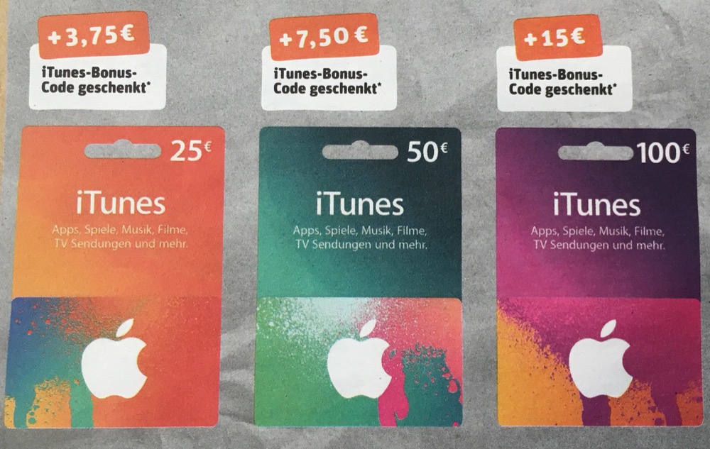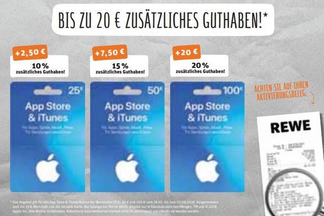 15 Prozent Bonus: Karten-Aktion diese Woche auch bei REWE Zusätzliches Guthaben für iTunes und App Store