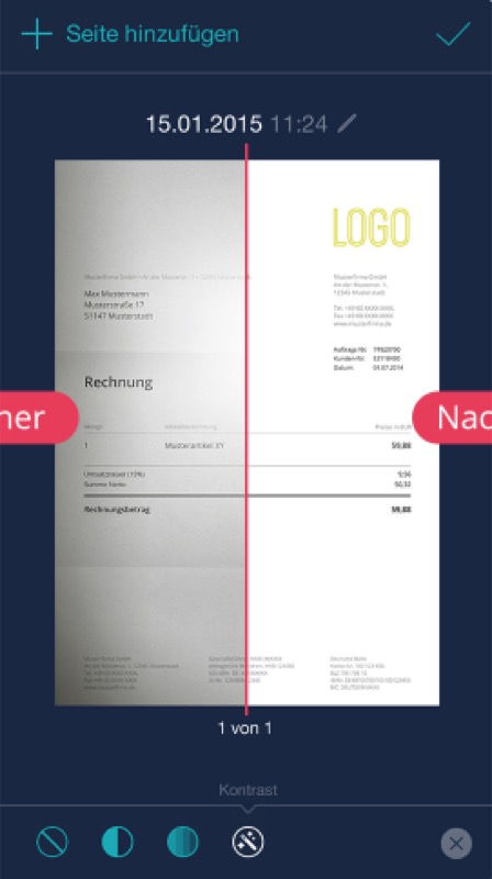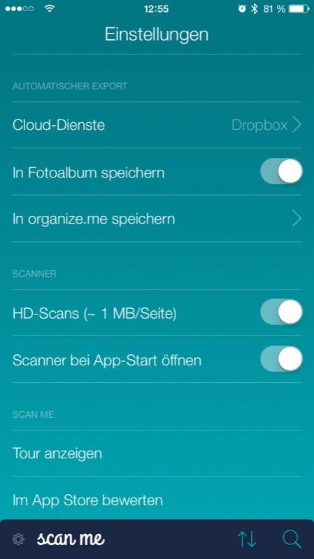 Scanner Pro ist die Applikation, die ich bisher regelmäßig zum Scannen von Dokumenten benutze. Nach dem Update auf Version 6 gibt es nicht nur ein neues Design, sondern auch eine Radar-Funktion, mit der Bilder aus der Fotos-App automatisch für Scans erkannt werden. Die Qualität der Scans ist top, es können mehrseitige Dokumente geknipst werden, die im Nachgang bearbeitet werden können. Viele Cloud-Dienste werden für den Export unterstützt, als Extra lassen sich Dokumente per Fax (mit Aufpreis) versenden. Die Ablage der Daten kann in Ordnern erfolgen. Per iCloud werden alle Daten zwischen mehreren Geräten abgeglichen.