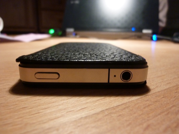 Und da sind wir auch schon bei einem Nachteil der Hülle angekommen. Das Case ist wirklich passgenau für das iPhone 4 konzipiert worden, doch für den ein oder anderen ist das Case zu eng gefertigt. Anfangs ist es wirklich recht schwierig das iPhone wieder aus der Hülle zu bekommen, doch nach einigen Wochen fällt das nicht mehr ganz so schwer. Mein Tipp: Das iPhone von unten herausdrücken und dann von oben herausziehen – funktioniert eigentlich recht gut. Hier könnte es allerdings in naher Zukunft passieren, dass das Leder porös wird, da es immer an der gleichen Stelle belastet wird.