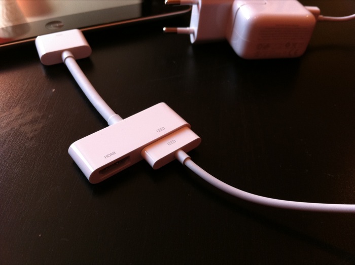 Ob Präsentation oder Spiel: Gelungener HDMI-Adapter Zubehör-Produkt Nummer 2 ist der Apple Digital AV Adapter. Ich möchte mich einfach mal auf HDMI-Adapter beschränken. Besonders die Tatsache, Spiele wie Real Racing 2 HD auf dem Fernseher zu spielen, sind ein Kaufgrund. Ein entsprechendes Video haben wir unter diesem Text für euch eingebettet.