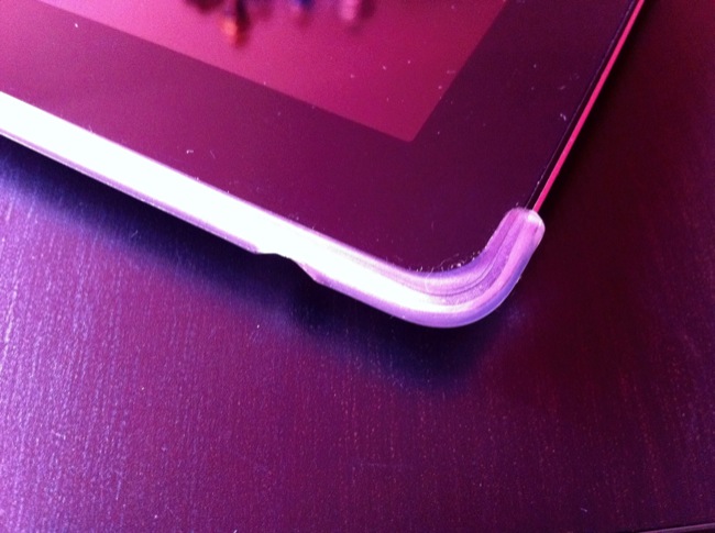 Eigentlich gibt es an diesem Produkt kaum etwas zu bemängeln, denn es harmoniert fast perfekt mit dem Smart Cover. Leider nur fast: Durch die Überlappung der Silikon-Umrandung liegen die Magneten des Smart Covers nicht mehr plan auf der Glasoberfläche auf und hält so kopfüber nicht mehr den Kontakt zu den Magneten. Außerdem ist es etwas fummelig, das Cover an der Seite anzuheben, wir empfehlen den Finger an einer der Ecken anzusetzen.