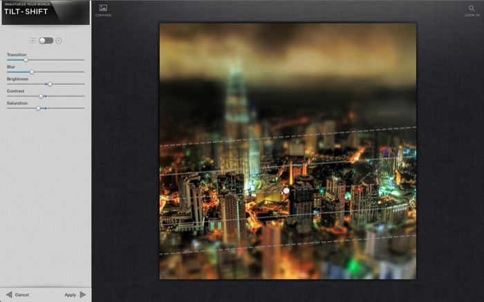Wer ganz ohne Retro-Effekte auskommen will, findet noch die wirklich gut durchdachte Fokus- und TiltShift-Funktionen, mit denen sich individuelle Unschärfen und Vignettierungen im Bild anlegen lassen, um damit eine Hervorhebung bestimmter Objekte zu erreichen. Auch hier finden sich, wie eigentlich in jedem Menüpunkt, über verschiedene Schieberegler viele Möglichkeiten zur optimalen Anpassung. Später können die fertigen Bilder dann abgespeichert werden, direkt aus der App gedruckt oder per Mail verschickt, oder auch bei Facebook oder Flickr hochgeladen werden.
