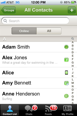 Zunächst wollen wir mit der wohl wichtigsten Aussage des gesamten Aufenthalts beginnen: ICQ lebt noch. Erst vor wenigen Wochen wurde die Werbung aus der iPhone-Applikation entfernt, die Nutzer bedankten sich mit einer durchschnittlichen Bewertung von viereinhalb Sternen. Außerdem kann man nicht nur mehr mit Freunden aus ICQ, sondern auch mit Kontakten aus Facebook, Google Talk und AIM schreiben.