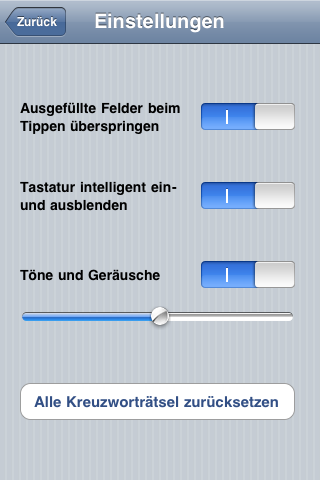 Die Handhabung des 3,99 Euro teuren Spiels ist absolut gelungen und setzt eigentlich keine Eingewöhnungszeit voraus. Das stufenlos zoombare Rätsel ist selbst auf dem kleinen iPhone-Display gut einsehbar. Mit einem Klick auf ein freies Feld kann man bereits mit der Eingabe starten – dabei berechnet die App die wahrscheinlichste Eingaberichtung. Bereits ausgefüllte Kästchen können – je nach Einstellung im Menü – direkt übersprungen werden.