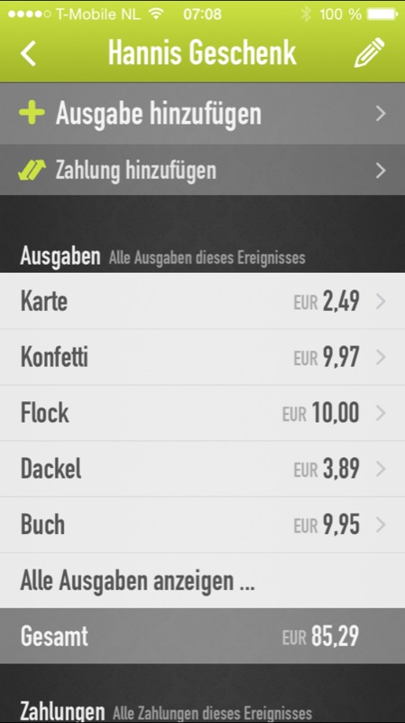 Wir wollen das Ganze einfach mal an einem kleinen Beispiel erklären, dass die Sache ziemlich klar machen sollte. Ben, Mel, Freddy und Fabian haben sich für einen netten DVD-Abend entschieden, für den Freddy einen Kasten Bier für 12,99 Euro kauft und Fabian die Chips für 2,99 Euro besorgt. Bevor aber das Geld nun wie wild hin und her geschoben wird, berechnet Splittr den einfachsten Weg. So schulden Ben und Mel Freddy jeweils 4 Euro, während Fabian Freddy nur 1 Euro schuldet. Mit drei einfachen Zahlungen hat man so den gesamten Einkauf ausgeglichen. Besonders interessant wird das natürlich, wenn noch mehr eingekauft wurde.