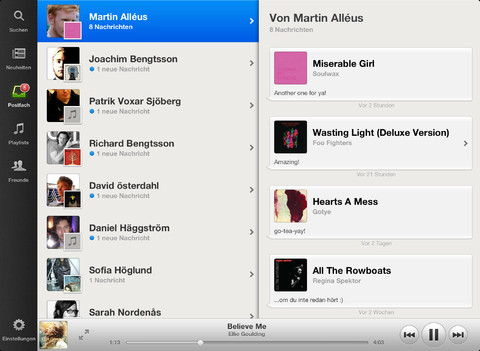 Von der iPhone-App habe ich mich bereits vor einigen Monaten überzeugen können, im Vergleich zu Simfy hat sie ganz sicher die Nase vorne. Das K.O.-Kriterium war damals das Fehlen vieler deutscher Künstler, daran hat man laut Regionalvorstand Axel Brungéus aber gearbeitet.