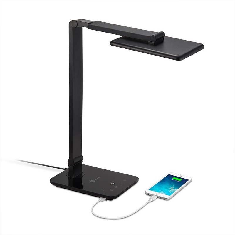 Nicht immer ist dort, wo eine Lampe steht, nämlich auch eine Möglichkeit gegeben, das iPhone aufzuladen. Denn nicht nur in Hotels, sondern oftmals auch in der eigenen Wohnung oder im Haus sind Steckdosen genau dort platziert, wo sie entweder schlecht erreichbar oder bereits belegt sind. Ist letzteres der Fall, kann man mit der TaoTronics TT-DL09 dieses Problem umgehen: Die 10W-Schreibtischlampe mit großem LED-Feld verfügt nämlich an ihrem Standfuß über einen integrierten USB-Anschluss, mit dem sich schnell und einfach iPhones, iPods und andere mobile Geräte über den 1A-USB-Port aufladen lassen.