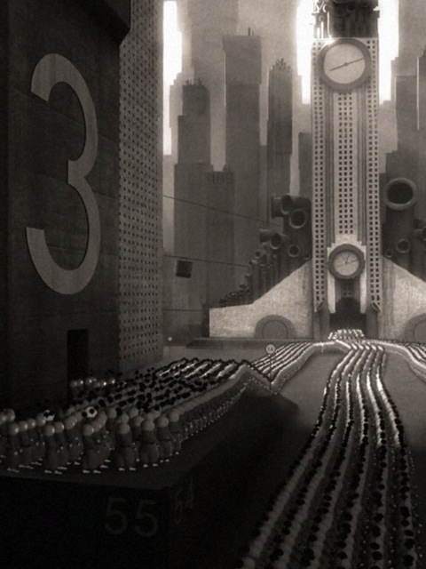 Startet man nun die Geschichte, fallen einem sofort die unglaublich schönen, aber zugleich auch düsteren Grafiken auf. Teils fühlte ich mich wirklich wie in die Metropolis-Kulissen zurückversetzt: Riesige Hochhäuser mit vergleichsweise winzigen Personen, die im surrealen Licht lange Schatten werfen, dazu eine passende Musik, die die unheimliche Atmosphäre noch unterstreicht.