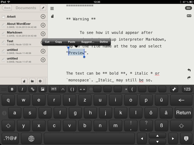Mit WordEver HD gibt es nun einen neuen Text-Editor für das iPad. Besonders hervorzuheben ist die innovative Tastatur.