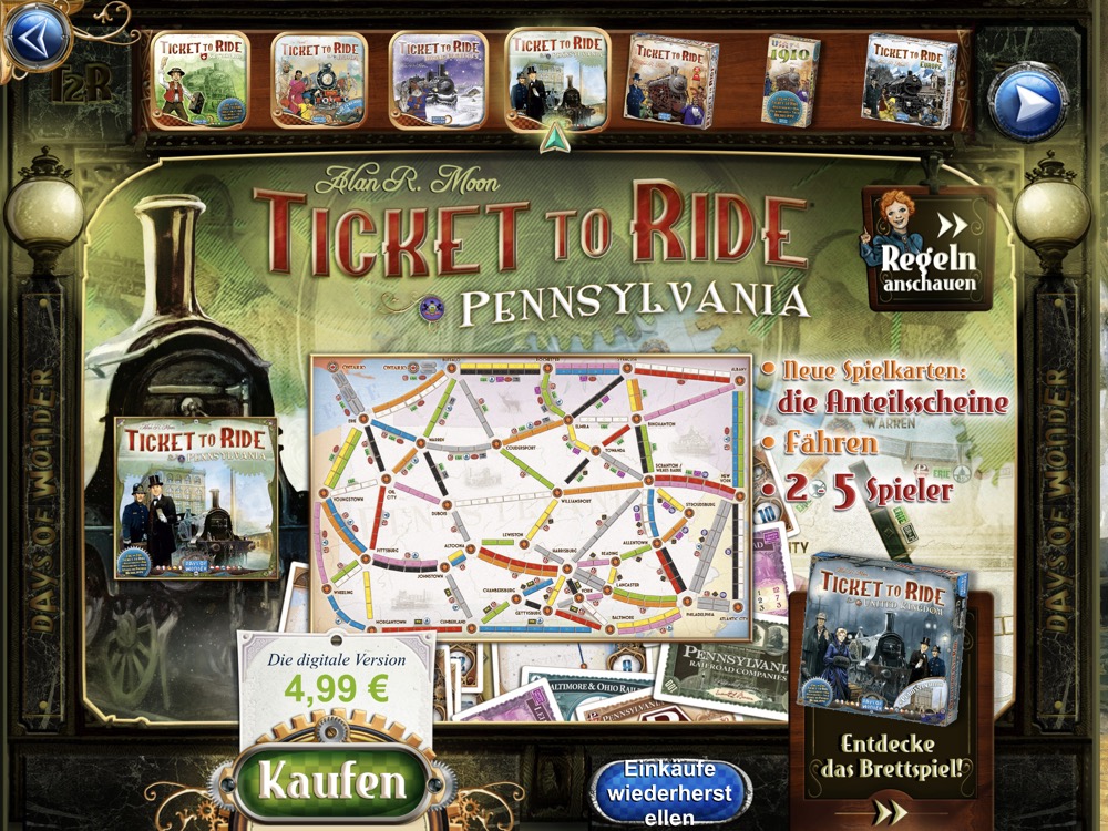 Ticket to Ride fährt jetzt auch in der Schweiz Neue Karte als In-App-Kauf