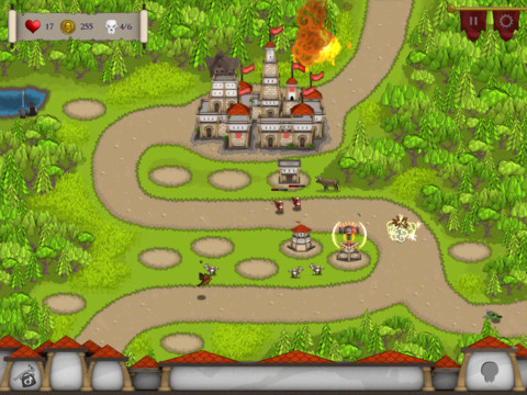 Insgesamt bietet das Spiel 15 Missionen, zusätzlich gibt es 15 weitere und besonders schwere Missionen im Herausforderungsmodus. Auf einen freien Platz kann man dann Verteidigungstürme, schwere Katapulte, kleine Lager oder ähnliches errichten – wobei man hier beachten sollte, dass die Türme nicht überall platziert werden können, nur auf den vorgegebenen Flächen. Natürlich muss das Gebäude mit Münzen bezahlt werden, die nur begrenzt zur Verfügung stehen. Durch jede getötete Einheit sammelt man weiteres Guthaben, damit man die Gegnerwellen durch das Bauen von neuen und aufrüsten von bestehenden Türmen auch überleben kann.