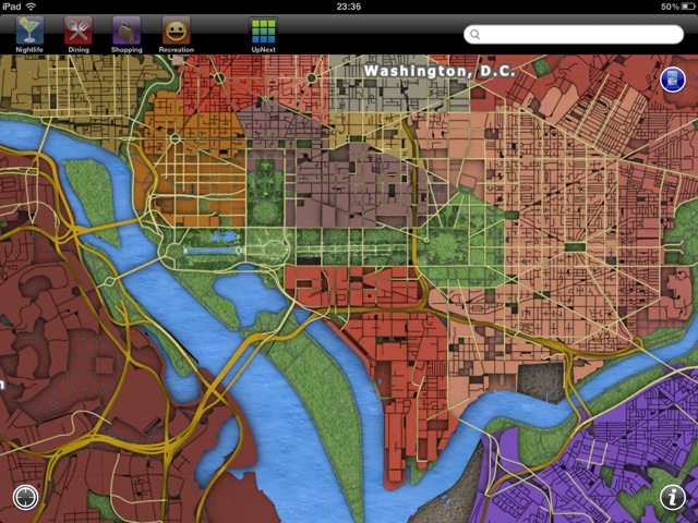 Einige Features der App beinhalten die Bestimmung der eigenen Position über das eingebaute GPS-Modul der meisten iDevices, sofern man sich gerade in einer dieser Städte befindet. Über Pinch-to-Zoom-Fingergesten kann man in die Karte hereinzoomen, die ab einem gewissen Detailgrad von einer 2D- in eine 3D-Ansicht wechselt. Damit lassen sich bekannte Gebäude umso besser betrachten.