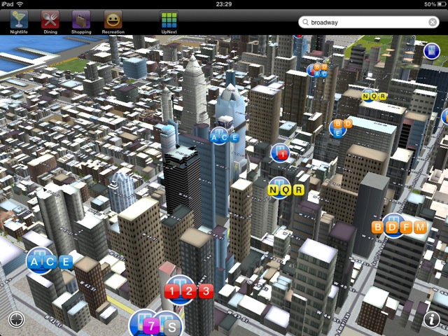 Mit der Universal-App UpNext 3D Cities (App Store-Link), die es schon seit einiger Zeit im App Store gibt, aber von uns bislang noch nicht großartig beachtet wurde, kann man nun diese Streifzüge zumindest auf dem iDevice nachholen. Mit kleinen 11,9 MB ist die gratis verfügbare Applikation auch schnell heruntergeladen. Update: Für iPad-Nutzer gibt es in UpNext HD Maps (App Store-Link) noch ein paar Städte mehr.