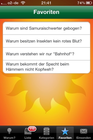 Wer „Wer wird Millionär“ oder auch das „Wissenstraining Allgemeinbildung“ auf seinem iDevice kennt und schätzt, sollte sich nicht lange mit einem Download dieses Wissensquiz‘ zurückhalten. Mehr als 3.600 Fragen aus 9 unterschiedlichen Kategorien stehen dem wissbegierigen Nutzer zur Verfügung. Die Fragen werden im Multiple-Choice-Verfahren gestellt: dabei stehen dem Spieler 3 mögliche Antworten zur Auswahl.