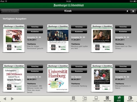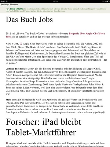 In der App selbst ist die Welt kompakt integriert. Hier liegt leider nur eine PDF-Fassung vor, was das Lesen am iPhone eindeutig erschwert. Jede Seite kann einzeln aufgerufen werden und kann nur mit Hilfe der Zoom-Funktion gelesen werden. Hier muss auf jeden Fall eine iPhone optimierte Ansicht her.