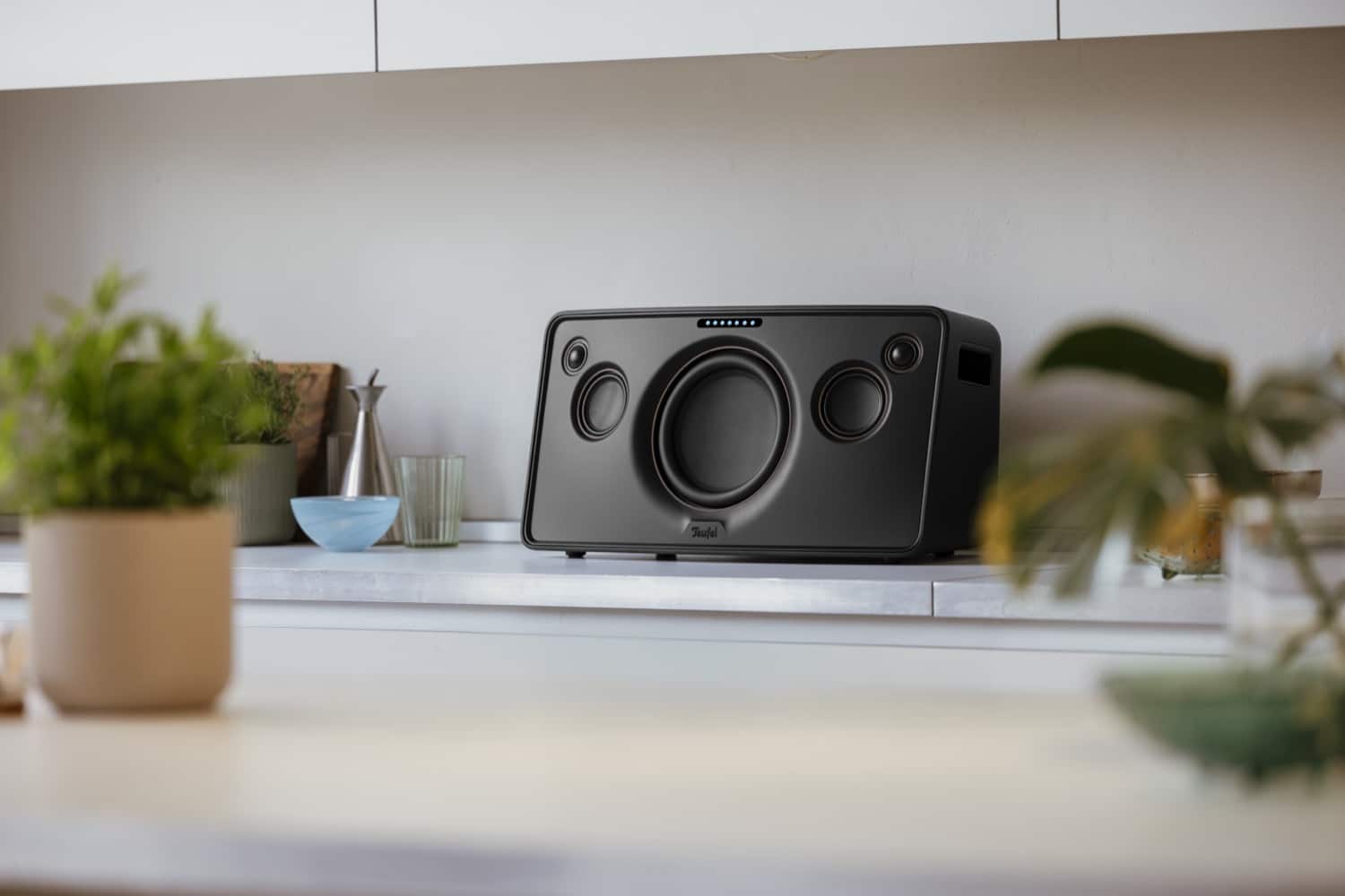 Und wie steht es um den Klang? Dazu sagt Teufel: „Auf der etwas über einen halben Meter breiten Vorderseite integriert Teufel ein Drei-Wege-System mit einem mächtigen 200-Millimeter-Langhub-Wok-Tieftöner aus Kevlar für druckvolle Bässe, zwei Mitteltönern und zwei Hochtönern. Im Inneren des Motiv XL sorgen ein hochwertiger Digital-Analog-Wandler mit bis zu 24 Bit / 96 kHz Auflösung und leistungsstarke Class-D-Endstufen mit insgesamt 210 Watt (RMS) Leistung für kristallklaren Sound und hohe Impulstreue.“