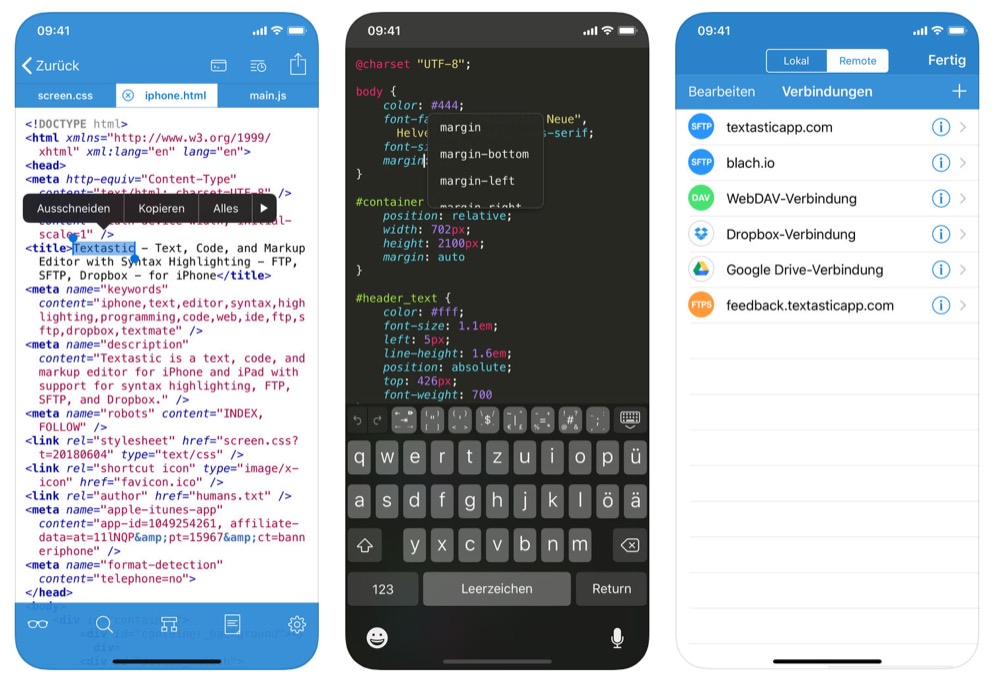 Der aus deutscher Entwicklung stammende Code-Editor kostet einmalig 10,99 Euro, ist auf iPhone und iPad verfügbar und im Download 20,8 MB groß.