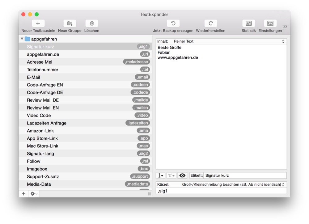 Vor einiger Zeit habe ich meinen Kollegen Frederick ja noch belächelt. Dafür, dass er TextExpander so intensiv nutzt und sich für jeden noch so kleinen Kram ein Kürzel merkt. Irgendwann habe ich TextExpander dann aber mal selber ausprobiert und musste schon nach wenigen Tagen feststellen: Ohne diesen Helfer will ich keinen Arbeitstag mehr am Mac verbringen.