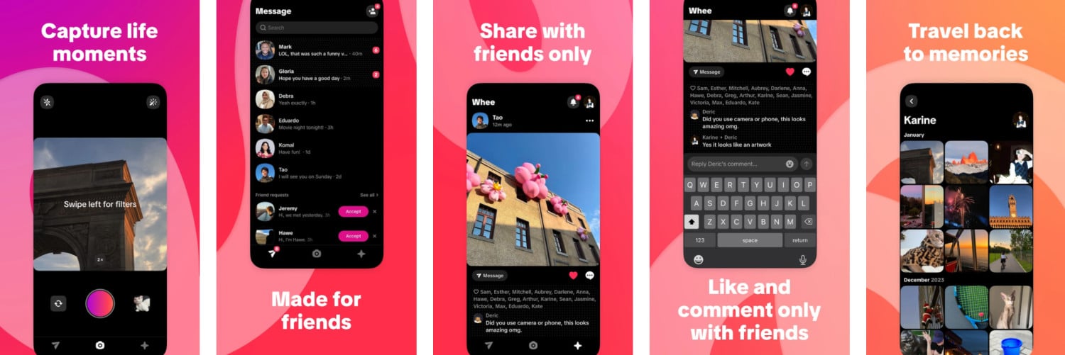 TikTok positioniert Whee ausdrücklich als eine App zum Teilen von Fotos nur mit dem engsten Freundeskreis „Nimm Fotos aus dem echten Leben auf, die nur deine Freunde sehen können, und teile sie mit ihnen, damit du dich so authentisch wie möglich zeigen kannst“, heißt es in der Beschreibung von Whee bei Google Play. „Whee ist der beste Ort für enge Freunde, um Lebensmomente zu teilen.“