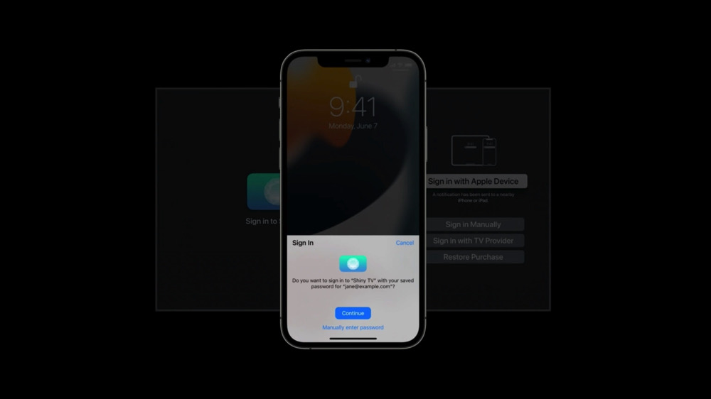 Mit tvOS 15 soll ein neuer System-Bildschirm eingeführt werden, der Usern eine einheitliche und App-übergreifende Login-Möglichkeit geben soll. In diesem Bereich wird es dann möglich sein, sich in tvOS-Anwendungen anzumelden, indem man auf dem iPhone Face ID oder Touch ID verwendet. Beim Login auf dem Apple TV erscheint dann eine Auswahloption „Anmelden mit einem Apple-Gerät“, die nach Bestätigung eine Benachrichtigung auf ein nahes iPhone oder iPad sendet. Mit Hilfe des iCloud-Schlüsselbunds können dann auch die Login-Informationen abgerufen und automatisch eingefügt werden. Für Einkäufe unter tvOS soll dieses Feature auch geeignet sein.