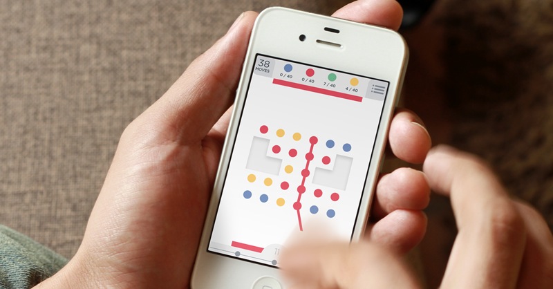 Das Spielprinzip: In TwoDots müsst ihr farblich gleiche Punkte verbinden. Dabei könnt ihr allerdings nur waagerechte oder senkrechte Kombinationen herstellen, beides zusammen funktioniert auch. Diagonale Verbindungen sind nicht zulässig und erschweren somit das Spiel. Wer ein Quadrat mit gleichfahrigen Punkten verbindet, löscht auf einen Schlag alle Punkte der gleichen Farbe. In späteren Leveln gibt es noch mehr Farben, auch sind einige Spielbereiche auf dem Display gesperrt.