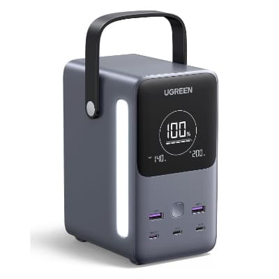 Die neueste Ugreen-Powerbank (Amazon-Link) ist schon fast eine Powerstation, denn ihre Kapazität von 48.000 mAh ist sehr hoch. Gleichzeitig bietet sie eine Leistung von bis zu 300 Watt, sodass auch mehrere Geräte gleichzeitig und schnell aufgeladen werden können. Die integrierten LiFePO4-Akkus sind langlebig, und die Abmessungen von 14,5 x 7,6 x 16 Zentimetern sind nicht gerade klein.