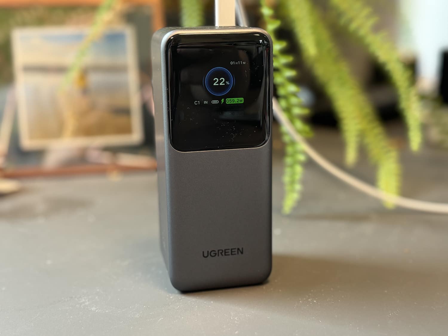 „können auch Leistungsdaten dargestellt werden. So kann man problemlos sehen, mit welcher Geschwindigkeit die Ugreen Nexode Powerbank lädt oder entlädt.“