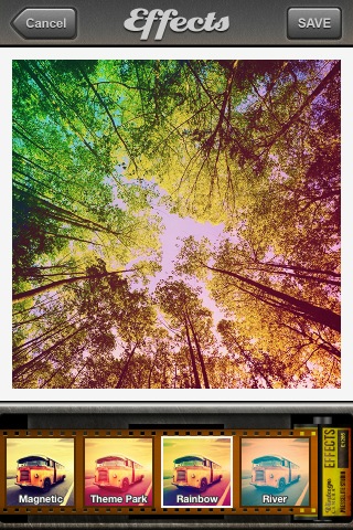 Mit Vintage Camera lassen sich aber nicht nur gerade geschossene Fotos mit Effekten versehen, sondern auch bereits vorhandene aus der Camera Roll des Geräts – ein großer Vorteil zu anderen Apps dieser Art, beispielsweise meinem erklärten Liebling Hipstamatic. Dort legt man sich schon vor dem Auslösen auf eine Effekt-Kombination aus Linse und Film fest, und Bilder aus der Camera Roll können nicht importiert und bearbeitet werden.