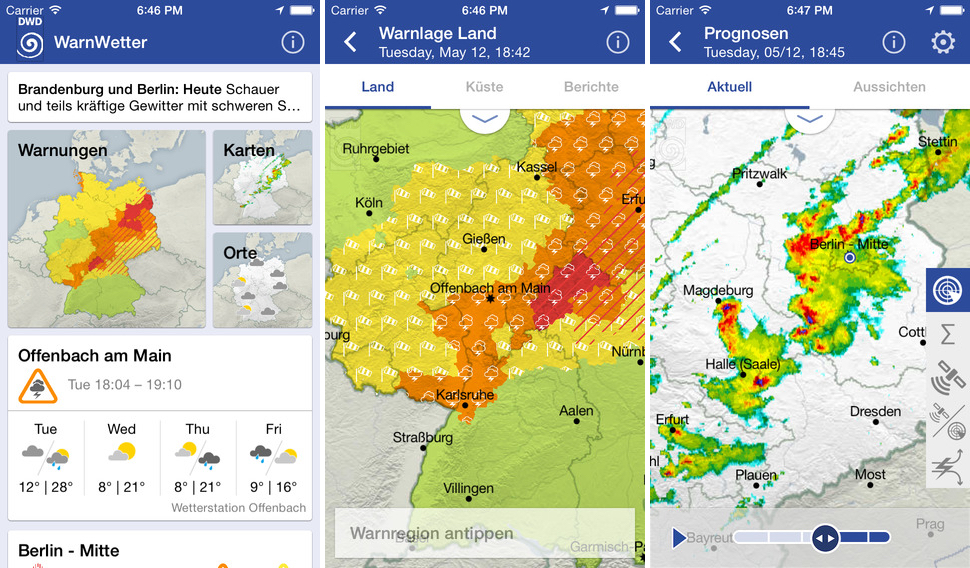 Auch auf meinen iOS-Geräten ist die Anwendung WarnWetter ein stetiger Begleiter, wenn es um Wetterwarnungen und Regenvorschau geht.