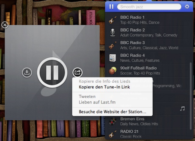Es handelt sich dabei um einen tollen Webradio-Client, mit dem sich per Suchfunktion Tausende Internet-Radiostationen finden lassen. Darunter viele bekannte deutsche Sender, aber auch Klassiker wie die Channel der BBC. Das Programm nistet sich dabei ganz dezent mit einem Herzsymbol in der Menüleiste des Macs ein.