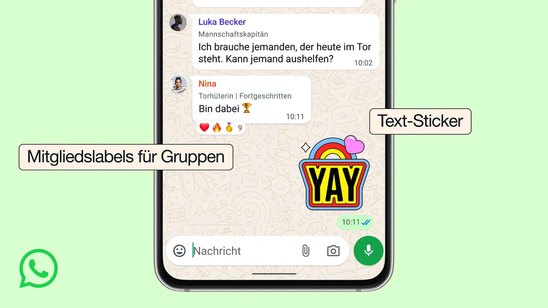 WhatsApp hat die neuen Funktionen serverseitig freigeschaltet, und zumindest die neuen Mitgliedslabel konnte ich bereits verwenden. In Gruppen muss man dafür einfach in der Mitgliederliste auf den eigenen Namen tippen und kann dann selbst ein Label vergeben.