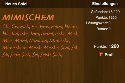 Am oberen Bildschirmrand wird neben dem Punktestand die mögliche und schon erreichte Wortzahl angezeigt. Mal sind nur knapp 30 Wörter möglich, mal um die 300 – immer abhängig von den zur Verfügung stehenden Buchstaben.