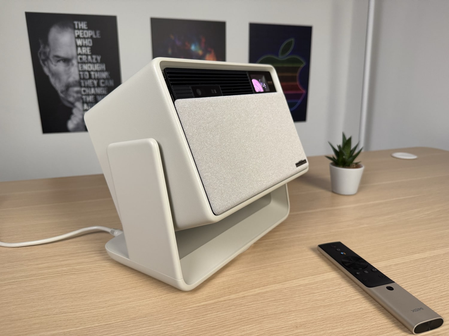 Optisch ist der XGIMI Horizon S Max klassisch gehalten und präsentiert sich in einem Beige-Ton, der sich harmonisch in jede Umgebung einfügt, ohne zu sehr aufzufallen. Das Gehäuse wirkt wie Leder, besteht aber aus Kunststoff. Besonders gut gefällt mir die motorisierte Blende, die sich automatisch öffnet, wenn der Beamer startet – und wieder schließt, wenn er herunterfährt.