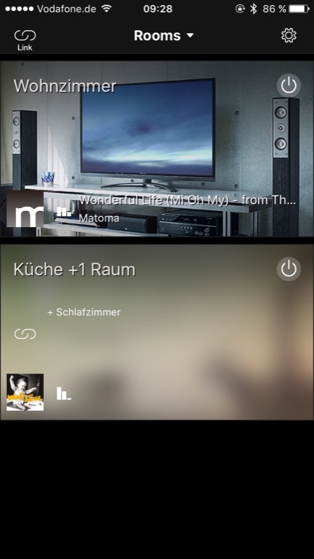 Die volle Ladung Sound gibt es allerdings nur mit der App: Im Handumdrehen sind zwei oder mehrere Lautsprecher miteinander gekoppelt und spielen das gleiche Signal ab. Egal ob Musik direkt vom iPhone, von einem der unterstützten Streaming-Dienste oder einem externen Eingang stammt, alles wird absolut synchron in die verschiedenen Räume verteilt. Selbstverständlich lässt sich die Lautstärke individuell regeln, entweder über die App oder direkt über Tasten am Gerät beziehungsweise über die dazugehörige Fernbedienung.