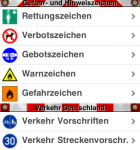 Die App Zeichen&Symbole teilt sich in mehrere Kategorien auf. Zu einem gibt es Gefahr- und Hinweiszeichen, zum anderem Verkehrschilder aus Deutschland und den USA. In diesen Kategorien gibt es weitere Unterpunkt wie Rettungszeichen oder aber auch Verkehr Verbote.