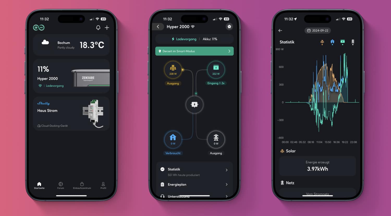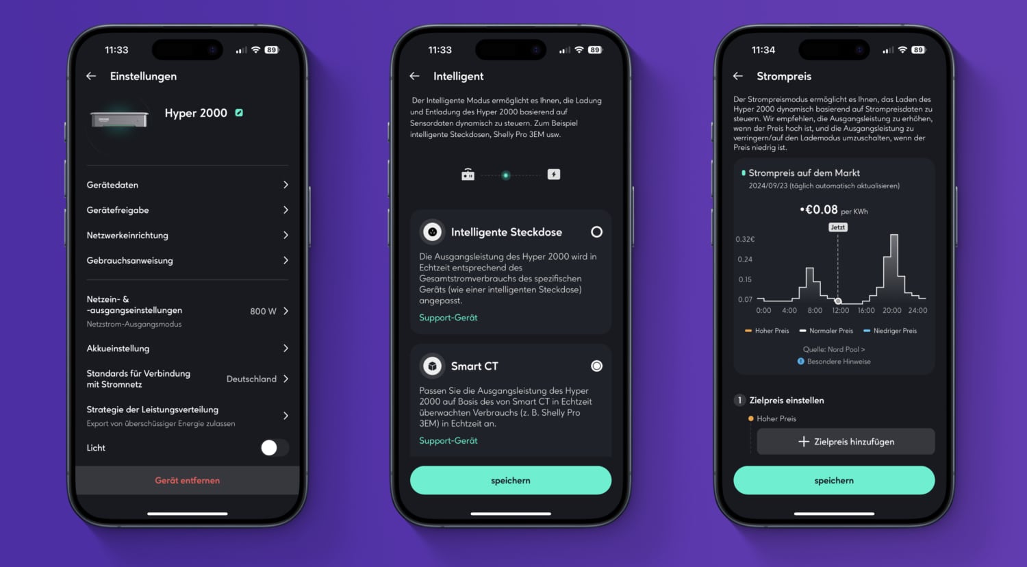 Neben der modularen Bauweise hat Hyper 2000 für mich einen großen Vorteil: Die Akkus können mit bis zu 1.200 Watt aus dem Stromnetz aufgeladen werden. Im Zusammenspiel mit einem dynamischen Stromtarif oder einem günstigen „Nachttarif“ gibt es so zusätzliche Möglichkeiten für Ersparnisse.
