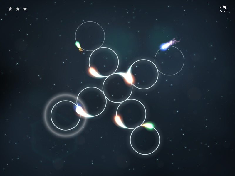 In den 70 Leveln von Zirkel steigt der Schwierigkeitsgrad immer weiter an. Es werden nicht nur mehr Kreise, teilweise haben sie auch eine unterschiedliche Größe. Das hat zur Folge, dass die kleinen Flammen sich in unterschiedlichen Geschwindigkeiten bewegen. Zusammen mit der Tatsache, dass es keine Hilfslinien mehr gibt, wird Zirkel so zu einer echten Herausforderung.