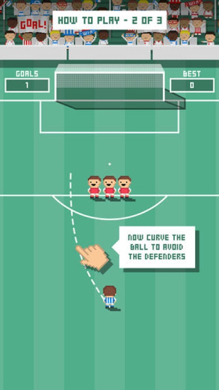 Geschossen wird jeweils aus einer Entfernung von rund 30 Metern zum Tor, wobei es nach jedem Treffer etwas schwieriger wird. Mal stellen sich Verteidiger in den Weg, mal bewegt sich der Torwart von links nach rechts und versucht den Ball abzufangen. Achja, wie wird eigentlich geschossen? Mit einer einfachen Wischbewegung, wobei man den Ball auch anschneiden kann.